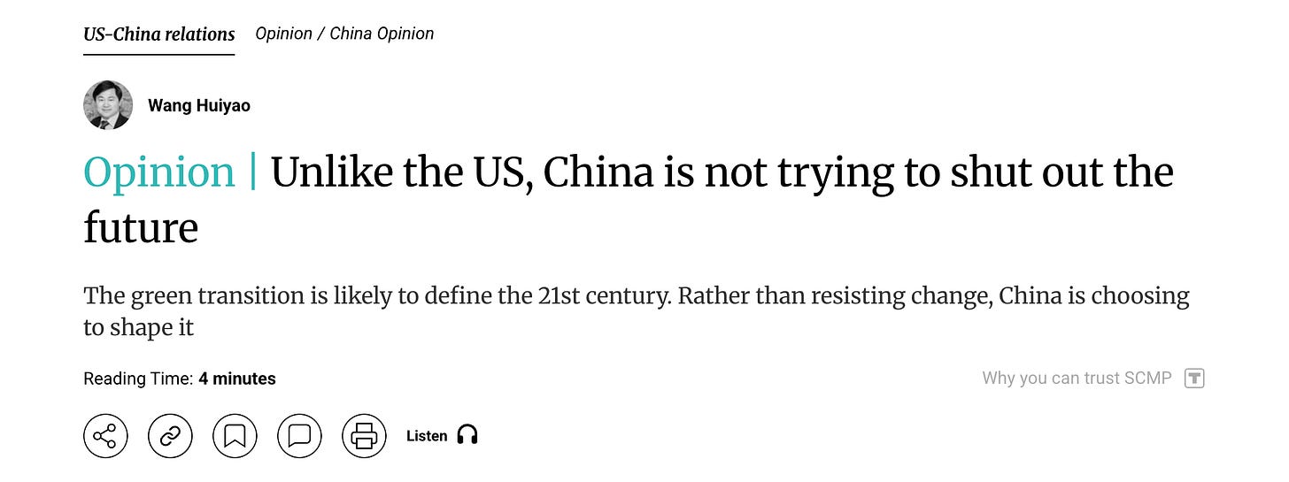 The CCG President writes in the South China Morning Post that the green transition is likely to define the 21st century; rather than resisting change, China is choosing to shape it.
