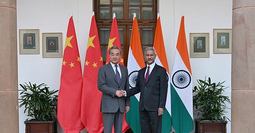 Substantial readouts from Beijing and New Delhi on Chinese Foreign Minister Wang Yi's recent meetings with Indian PM Modi, FM Jaishankar, and National Security Advisor Doval in India.