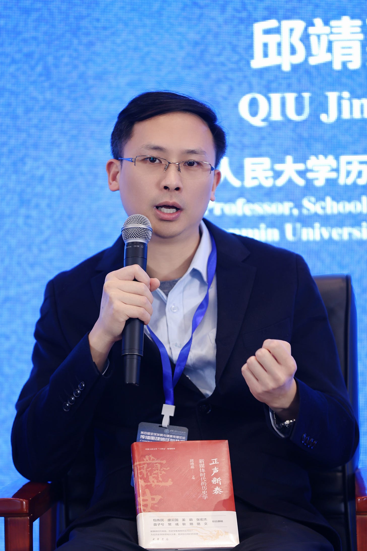 All right, let’s begin by talking about what this so-called “trust deficit” feels like in real life. Is it that there’s simply too much information, making truth hard to discern? Or are we lacking the right way of thinking to make sense of it all? Earlier, I mentioned Professor Qiu. You worked with Professor Bao to develop this course, and you’ve brought your new book as well, haven’t you? Could you please tell us — what exactly is “History in the New Media Era”? What problems does it aim to address?