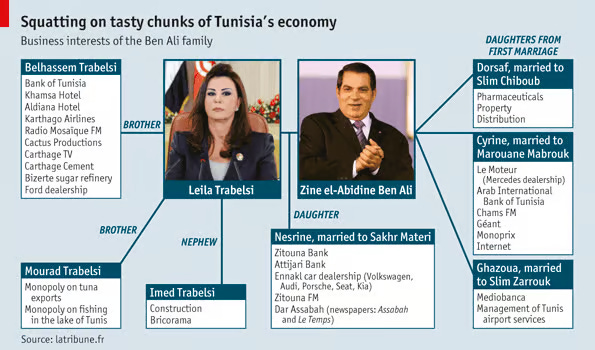 Now, Tunisia, it’s a different story. After Ben Ali’s government fell, our colleagues in the research department of the World Bank had ownership of the entire firm’s data during Ben Ali’s time and saw that the entire economy, the tasty chunks of it, is really in the ownership of Ben Ali and his wife and their children and their relatives. And if you look at the statistics, even though they only own one out of 1,000 companies and hire less than two per cent of labour and produce less than 5% of output in the entire economy, they do have nearly 15% of net profit.