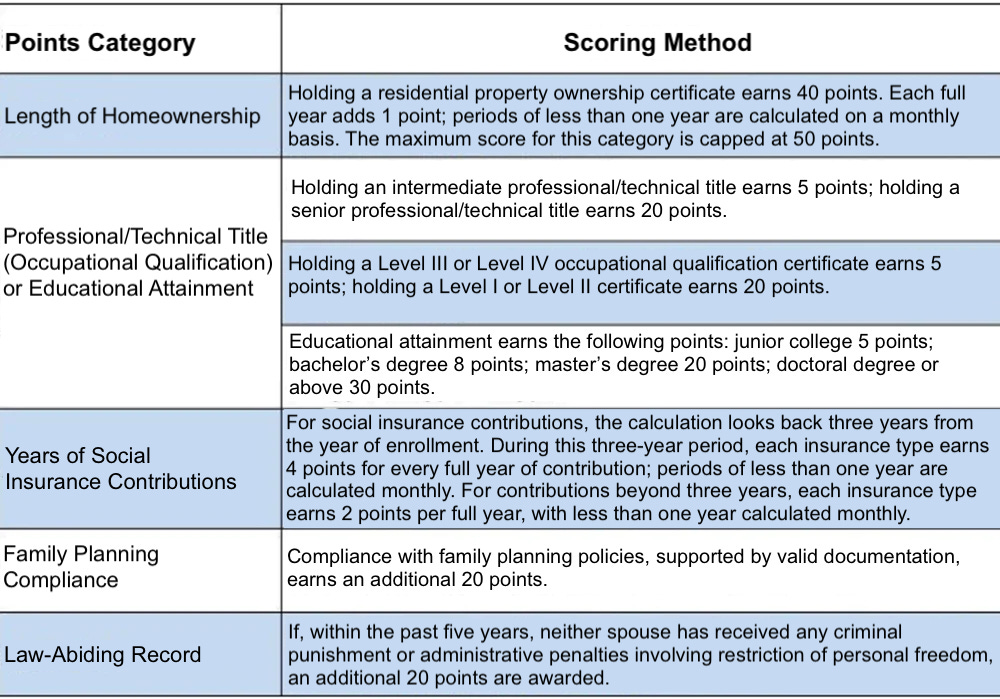 Take Kunshan, Jiangsu Province, one of my field sites. The city uses a highly calibrated points-based system to include or exclude migrant workers from public education. Points come from homeownership, education level, social security contributions, etc. For example, buying a home in a township gives 40 points; a junior college degree gives 5 points; each year of paying social insurance adds 4 points per category. Public school slots are limited and assigned by ranking—those who score high enough get in, those who don’t are excluded.